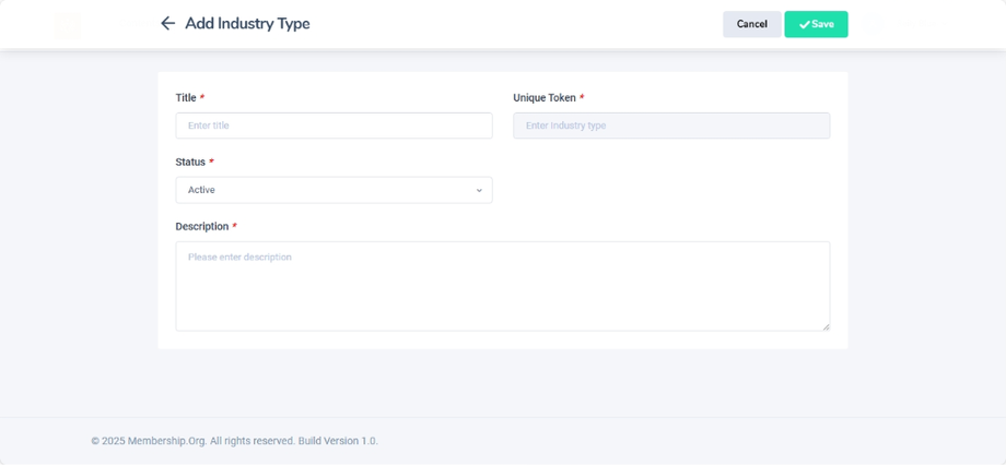 Navigate to the Add Industry Type Form under the Jobs menu. -