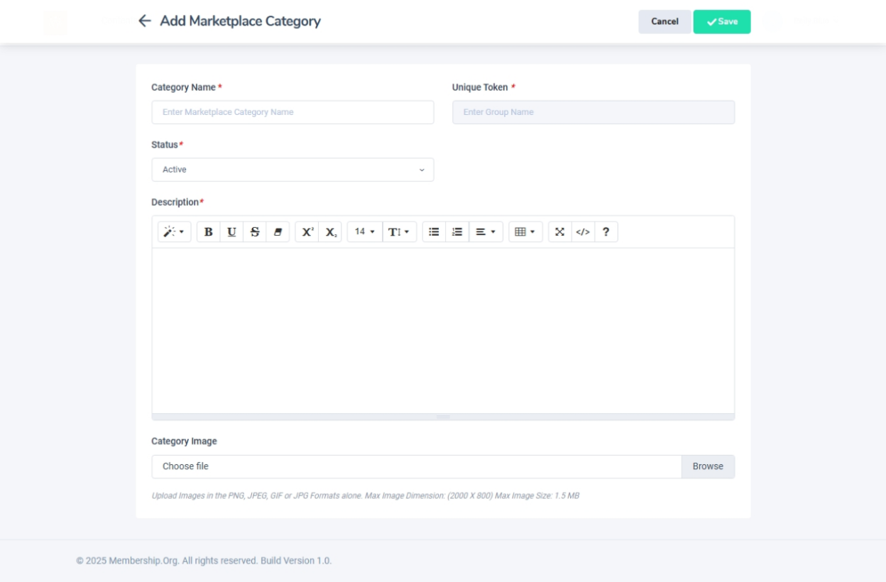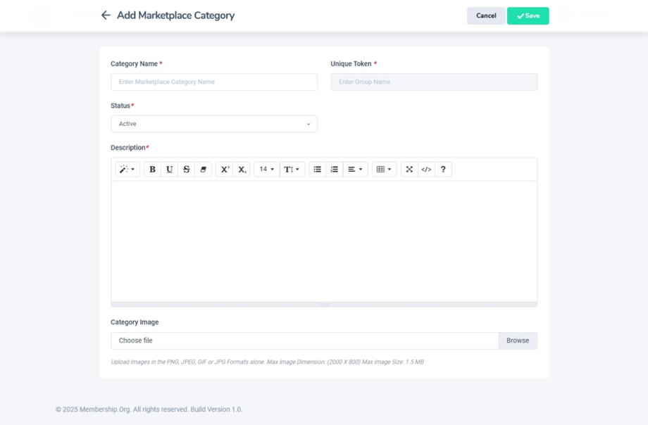 • Navigate to Marketplace → Add Marketplace Category Form from the admin menu.