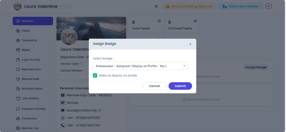 The badge will now appear on the member’s profile and may be visible in public listings depending on platform settings.