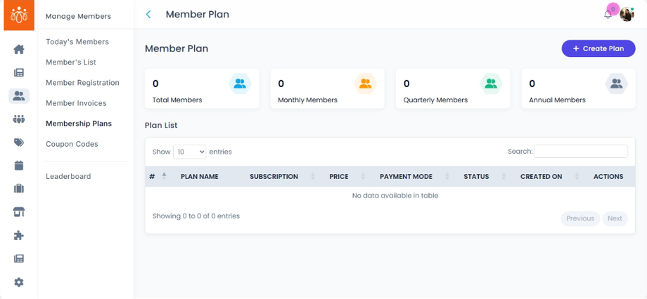 The Membership Plans section allows admins to view, create, and manage all available membership tiers on the platform. These tiers define the duration, pricing, benefits, and access levels for members. Common examples include Monthly, Annual, and Lifetime memberships.