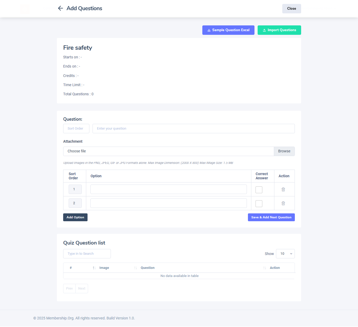 • Add Questions: Use this section to manually enter each question and define its correct answer.